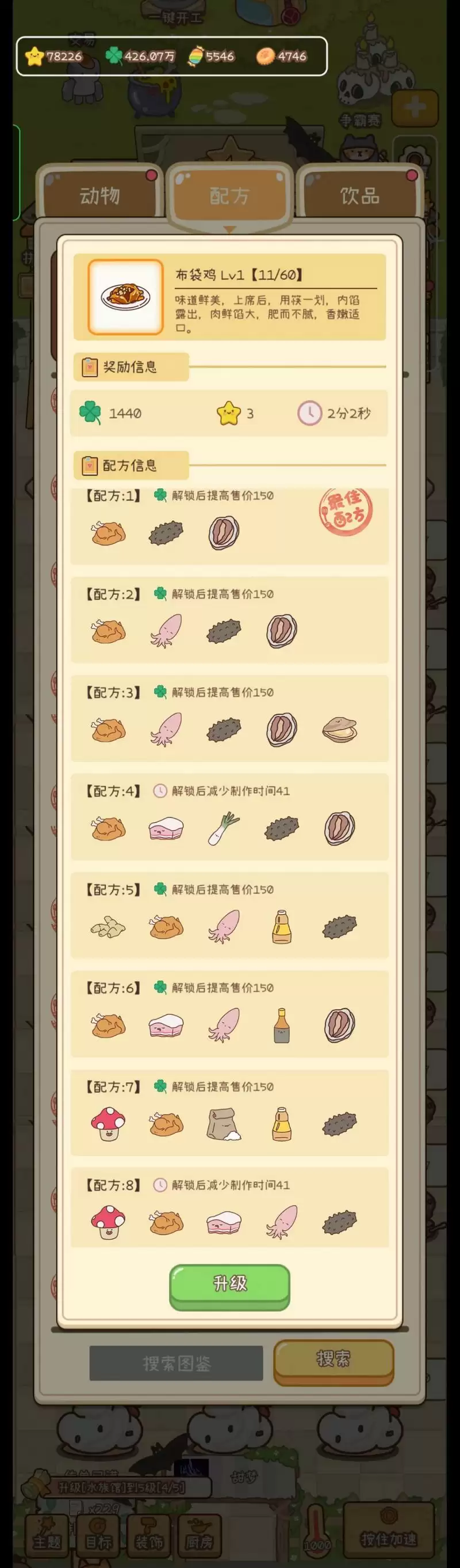 蘑菇,鸡肉,琼浆,糖