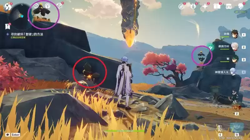 先用岩元素攻击或者大剑,击碎矿物获得岩种子,在靠近机关,并攻击即可