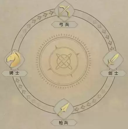 另外兵种除了存在克制关系,也会有不同的特性,例如按攻击力排序,分别是弓兵>枪兵>骑兵>剑兵。