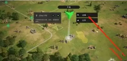 2、在弹出来的选项框里选择【迁城】,绿色的地方就是可以迁城的地方,要是格子变红了就说明不能放置