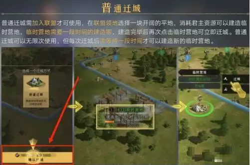 3、迁城是需要花费一些材料和时间的,普通迁城需要花费木材10000、石头10000、行动令1