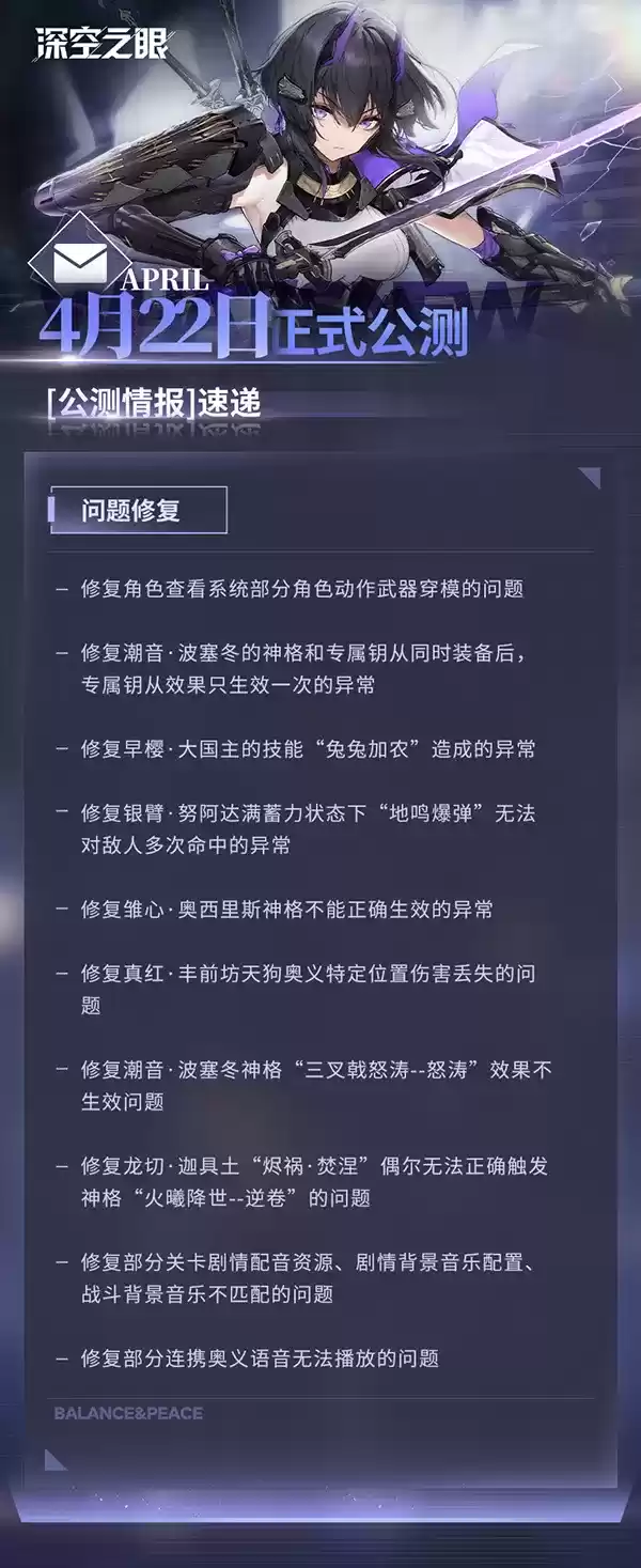 在测试阶段玩家发现的一些角色动作、武器等问题也进行了修复,同时还有其他的一些玩法、副本等都得到了解决。