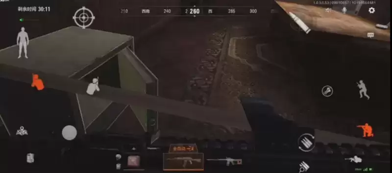 按下蹲+左探头,此时我们的视野正视正前方,而后慢慢的往左侧滑动视角。在看到枪械穿墙时微微的往下调整位置。