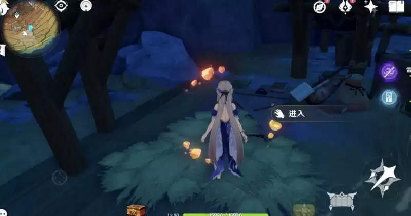 营地地下有一个草席,需要站在上面才会有一个“进入”的交互按钮,交互距离很小,需要站在中间些位置。