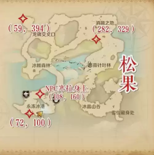 龙之国物语冰晶雪地图开放后,新增了雪花和松果特产,玩家前往指定位置采集获得,很多玩家在找松果,龙之国物语冰晶雪原松果在哪,游乐小编为大家带来冰晶雪原松果坐标位置一览。