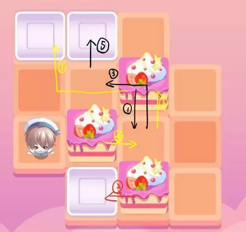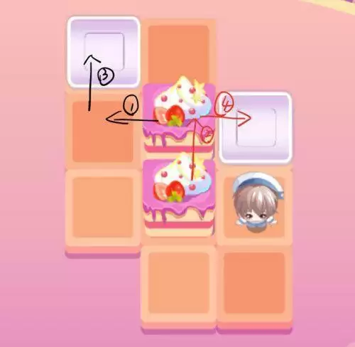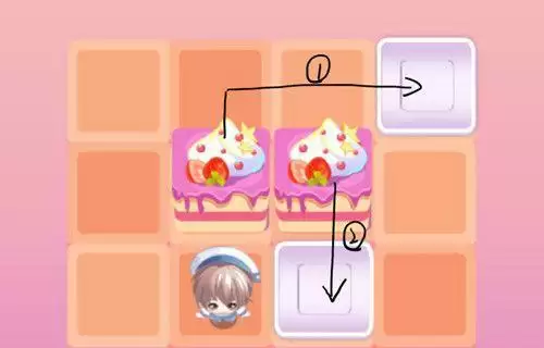这个推蛋糕的小游戏其实就是很经典的推箱子,然而似乎有很多玩家都不清楚推箱子如何顺利过关。