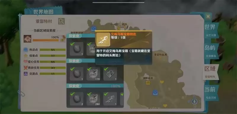 亚留特村地图全任务完成-探索度100%奖励-艾梅乌斯宝箱钥匙-艾梅乌斯宝箱-(地标:亚留特92.27)