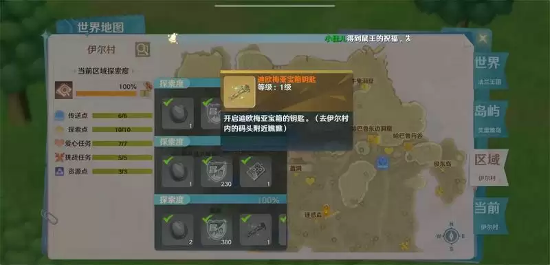 伊尔村地图全任务完成-探索度100%奖励-迪欧梅亚宝箱钥匙-迪欧梅亚宝箱-(地标:伊尔村141.237)