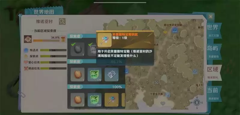 维诺亚村地图全任务完成-探索度100%奖励-芙蕾雅特宝箱钥匙-芙蕾雅特宝箱-(地标:维诺雅村180.128)