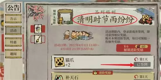 2、还可以通过近期上线的一些活动来得到【猫爪】。