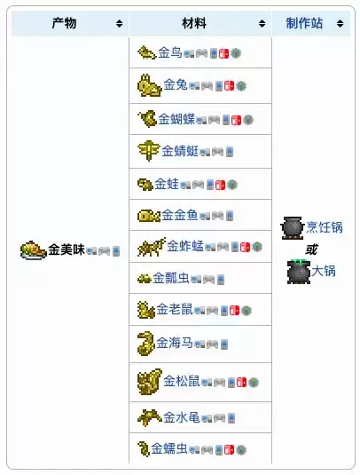 金美味这个食物可太厉害了,要使用13中金色动物才可以制作成功但是它的作用却没有那么大,那么金美味到底怎么才能获取呢?接下来小编就给大家带来泰拉瑞亚金美味获取方法,感兴趣的小伙伴就一起接着往下吧!