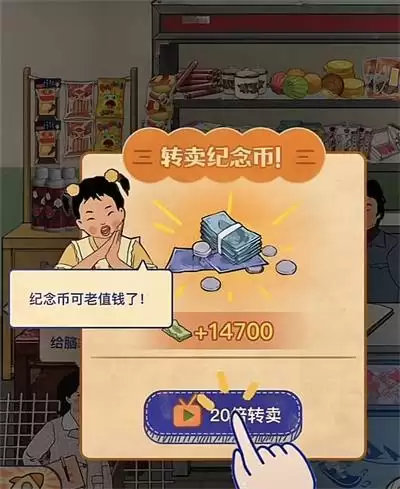 5.点击桌子上的蓝色纪念币,二十倍转卖出去。