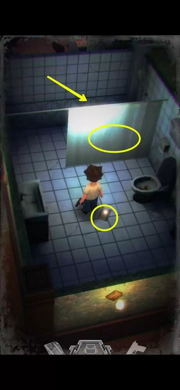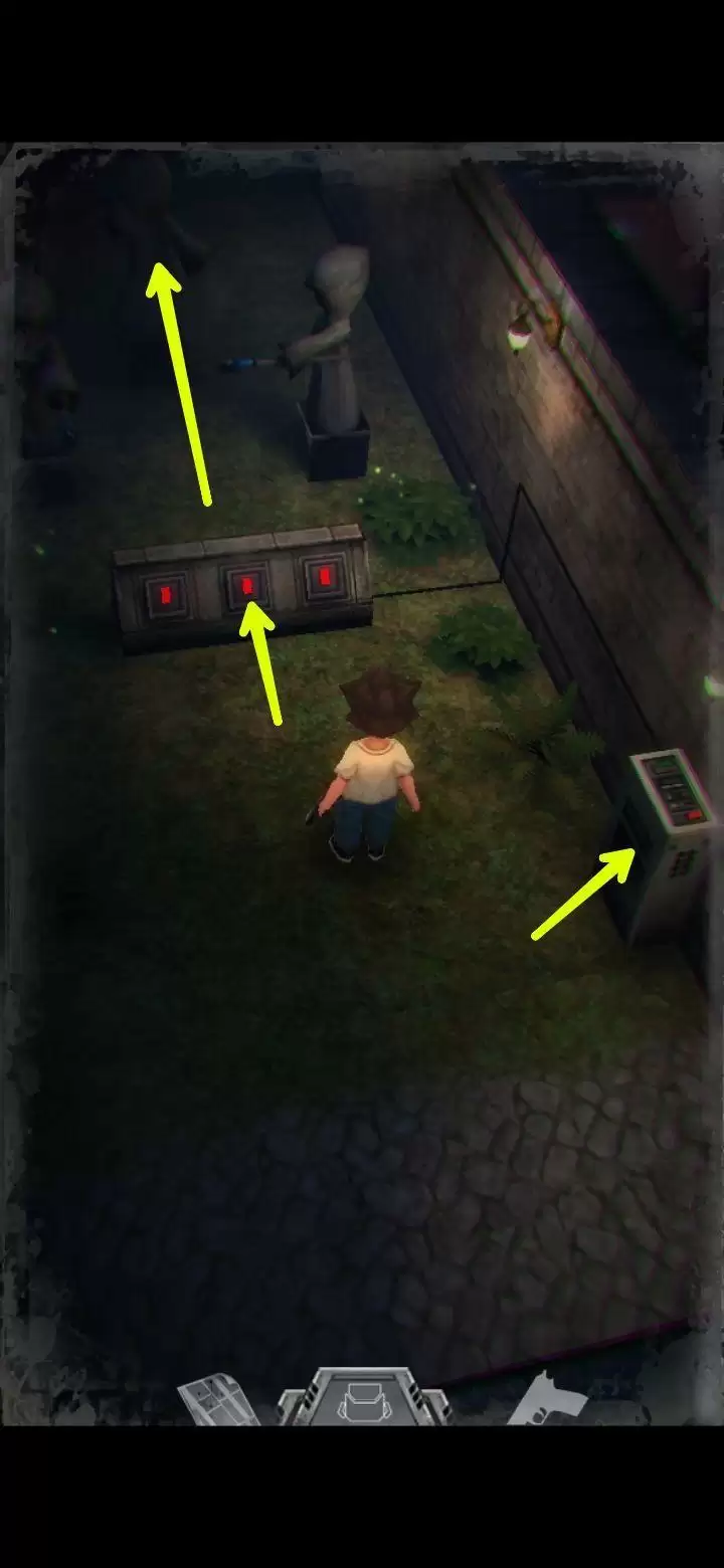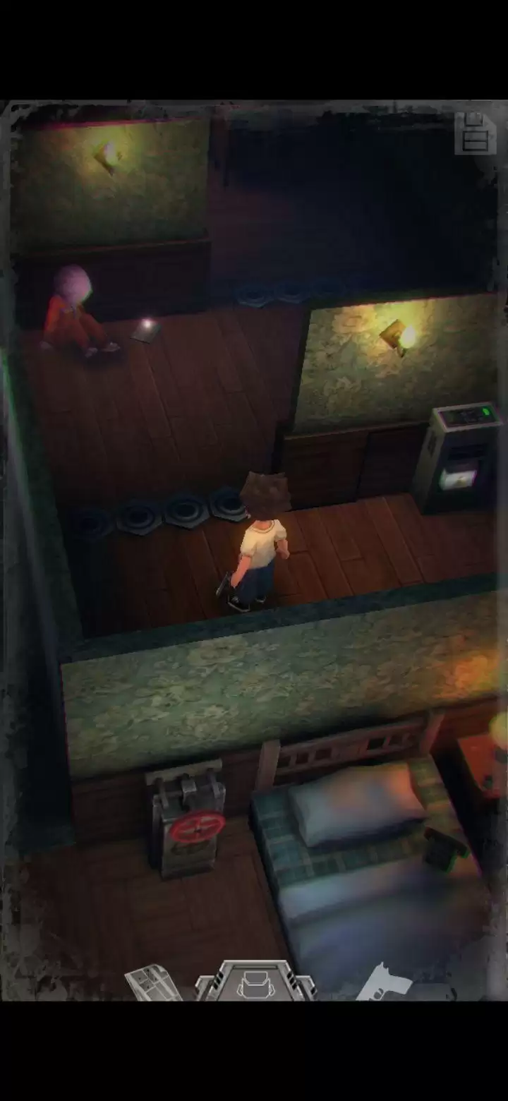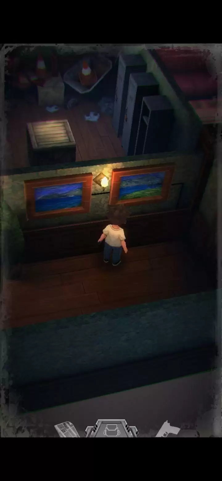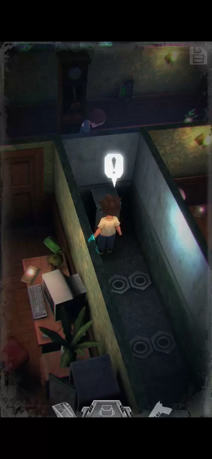 桌子上有个不能按的按钮先记住。鲍勃日记里提到645是别处的密码,保险柜密码是153(办公室内的1个沙发,5个酒瓶,3幅画),拾取手枪,地上拾取弹夹。打开背包,组合弹夹和手枪,装备手枪,一次最多装填16枚,每次打完怪记得及时补充。打怪技巧:射击时可以长按屏幕瞄准,然后一直轻点射击,或者点击一下屏幕下方的手枪标志瞄准(再次点击就会取消瞄准),然后多次点击屏幕其他地方进行射击,或是直接点击怪物进行手动瞄准。(瞄准后可以一直射击,不用瞄一次打一次,移动会中断瞄准状态,需要再次瞄准才能射击)箭头指的地方有一扇门,走进去。有怪出来,不要惊慌,拉开距离以后瞄准(我推荐点下方的手枪标志),射击,近距离被抓到会掉血,不贴脸就没事,非常简单,怪“啊!”的惨叫一声之后就不要再开枪了,已经死了,注意节省弹药。有的怪死了以后会掉亮闪闪的代币,记得踩踩尸体。