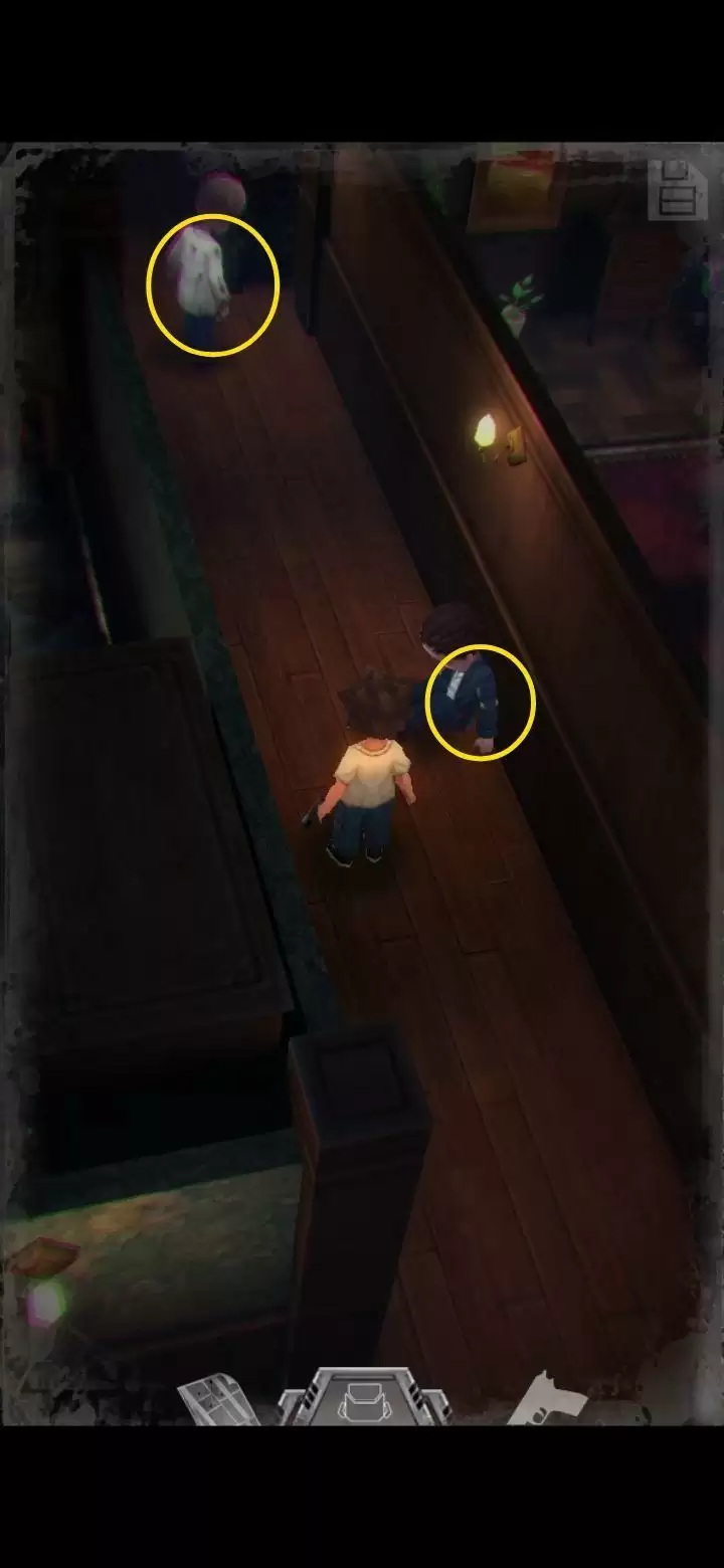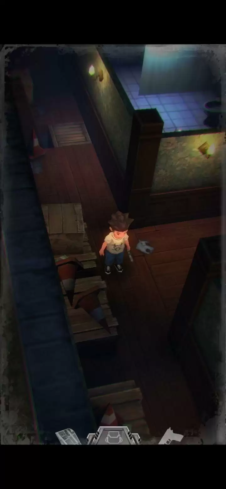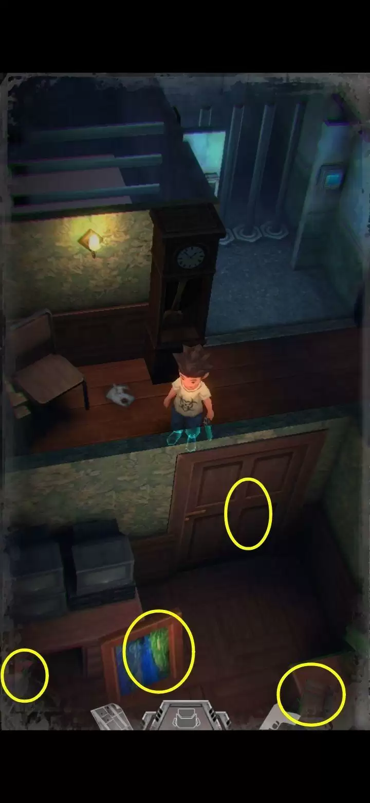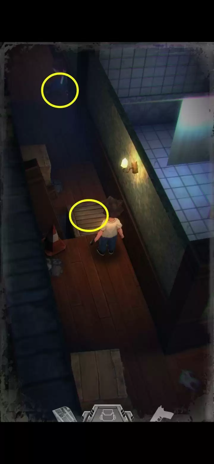 桌子上有个不能按的按钮先记住。鲍勃日记里提到645是别处的密码,保险柜密码是153(办公室内的1个沙发,5个酒瓶,3幅画),拾取手枪,地上拾取弹夹。打开背包,组合弹夹和手枪,装备手枪,一次最多装填16枚,每次打完怪记得及时补充。打怪技巧:射击时可以长按屏幕瞄准,然后一直轻点射击,或者点击一下屏幕下方的手枪标志瞄准(再次点击就会取消瞄准),然后多次点击屏幕其他地方进行射击,或是直接点击怪物进行手动瞄准。(瞄准后可以一直射击,不用瞄一次打一次,移动会中断瞄准状态,需要再次瞄准才能射击)箭头指的地方有一扇门,走进去。有怪出来,不要惊慌,拉开距离以后瞄准(我推荐点下方的手枪标志),射击,近距离被抓到会掉血,不贴脸就没事,非常简单,怪“啊!”的惨叫一声之后就不要再开枪了,已经死了,注意节省弹药。有的怪死了以后会掉亮闪闪的代币,记得踩踩尸体。