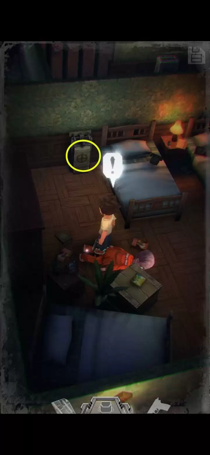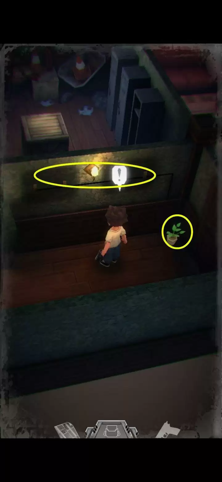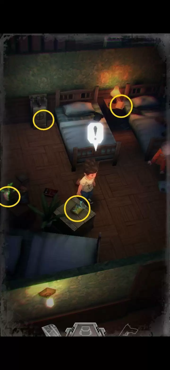 可交互的物品会有光点闪烁,走到可交互的物品前会显示惊叹号,出现图上圈的标识时点击屏幕任意处可以触发交互。