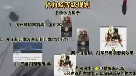 1、在没有开启刻印本,多余的体力可以用于: 刷金币本,因为后期赌刻印词条对于金币花销还是比较大的;