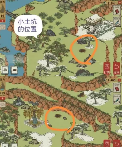 剧情中途有蓝色聊天框,老伯会告知你寻找两件遗物和拿到一张谜语纸,两个坑会挖出两件遗物,去终点右侧最高山上坟墓拜祭可以拿到奖励。