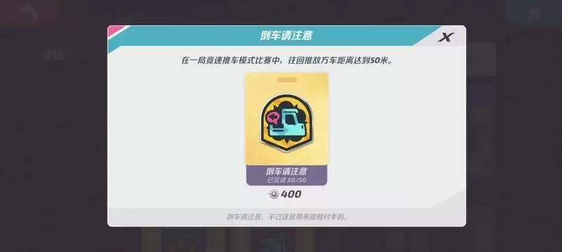 在一局竞速推车模式中,往回推敌方车距离达到50米
