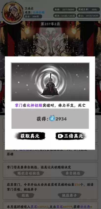 前期有两次选择弟子和安排弟子任务安排好后,后面的挑选弟子谨慎选择。