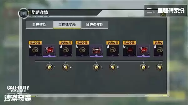 里程碑是先锋联赛的主要奖励系统,将根据战士们获得的皇冠数量解锁相应奖励。各位战士也可以将里程碑升级为高级里程碑并开启专属奖励。这里要提醒一下各位战士,里程碑奖励将会每周刷新,一定要保持关注哦!