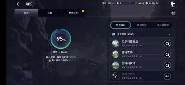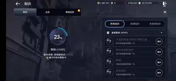 对游戏中地形、学问、生态、冒险、人物、头目方面的目标进行探索、收集,不同知识类别的获取方式也有所不同,有的知识通过击杀怪物获得,而有的知识只需要与人物对话就可以获得。只要达成目标,获得相对应的知识就能享有不同的增益效果加持。