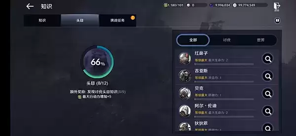 6.【头目】是指与头目、世界王相关的知识。需要冒险家参与头目或世界王的讨伐,完成击杀获得知识,并且该类别的知识是可以升级的,继续击杀怪物可以提升知识的等级。