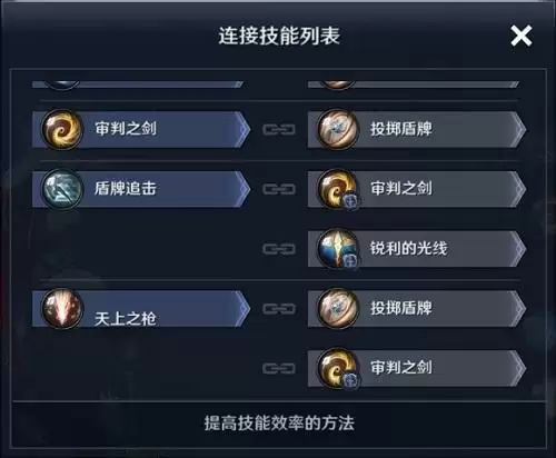 ①审判之剑:可以连续使用三次,最后一击霸体,最后一击命中眩晕,学习10级深化后,在盾牌追击的突进中,使用天上之枪,使用此技能,可以立即发动最后一击。