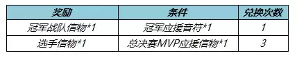 3.使用总决赛MVP应援信物可兑换总决赛两支战队选手的信物,总决赛MVP将在10名选手中只产生一名