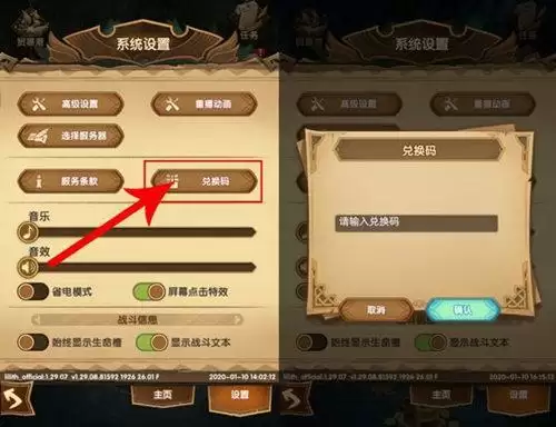 2、打开系统设置页面,点击兑换码即可进行输入。