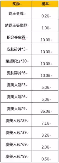 王者荣耀霸王别姬抽奖价格