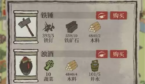 2、兑换铁锤需要使用5个铁钉、10个铁矿石、2个木料