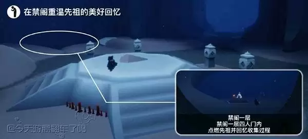 4、面对光遥冥想,在禁阁一层右边高台上过了双人门后再往前走一点。