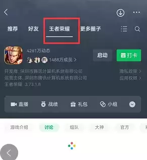 2、搜索王者荣耀,进入王者荣耀的圈子