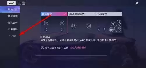 2、来到设置页面,点击左下方的礼包码。