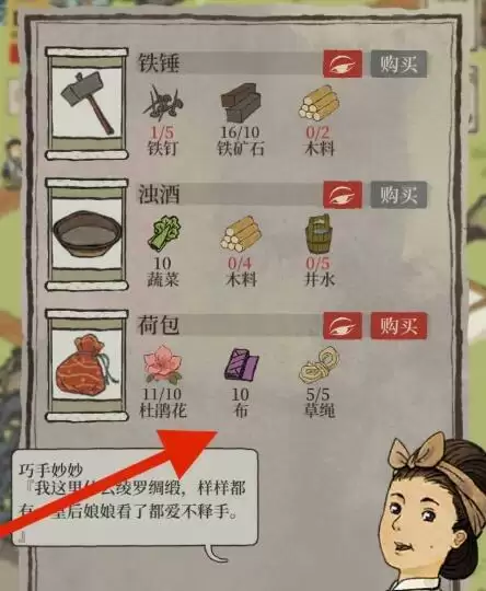 3、然后去消耗杜鹃花、布料、草绳等就能完成兑换。