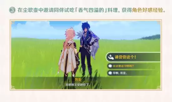 原神有香自西来是一个制作料理的活动,我们做好料理后要邀请角色试吃,每位角色都有自己鲜明的口味喜好,只有投其所好送上喜欢吃的,这样才能增加好感度,下面就一起来看下角色试吃喜欢料理介绍吧。