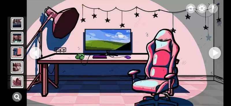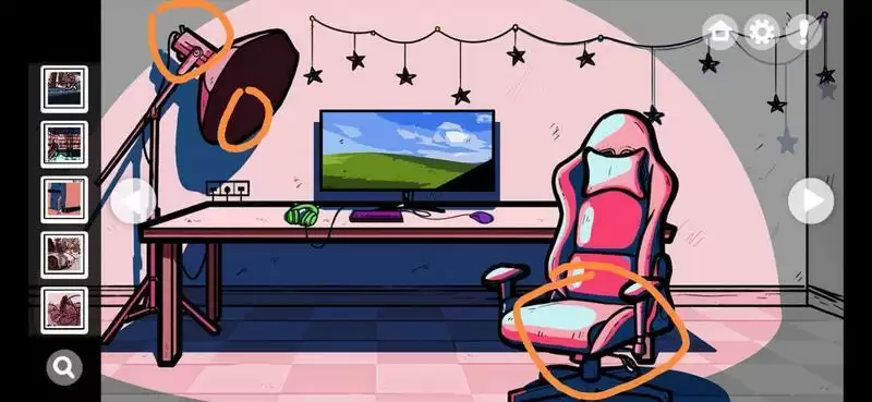 1、点击椅子调节座椅发现照片,点击摄影灯打开后在灯上发现照片;