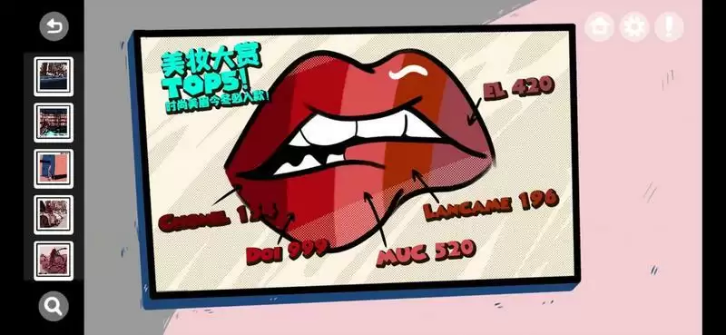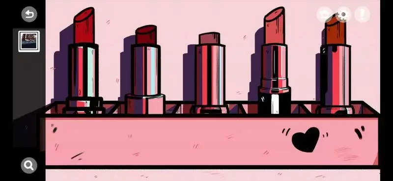 5、点击化妆台上的口红打开口红盖后发现最短的两根口红再与墙上的色号进行比对得到420154;