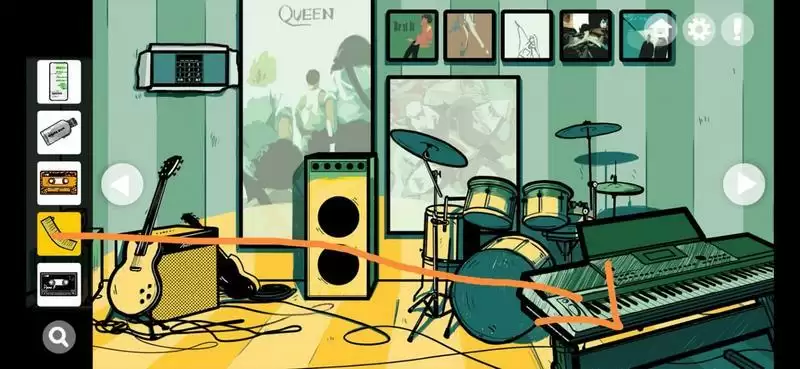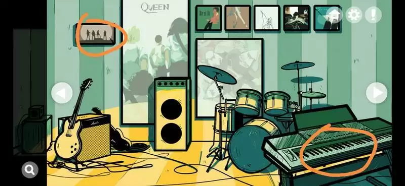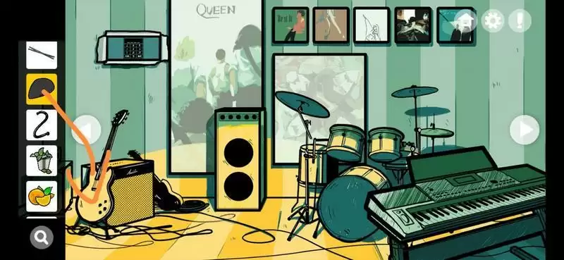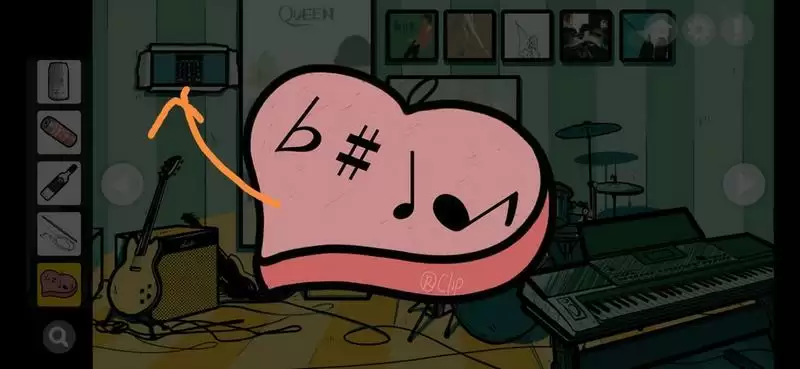 1、撕开左上角画,点击电子琴得到鼓锤;