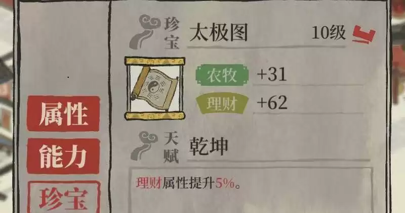 杜言行的的属性偏农牧和理财,没有专属珍宝的小伙伴可以选择太极图