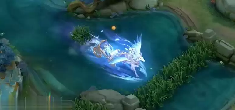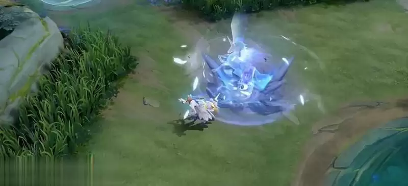 一技能:击飞的时候会飞来一匹荧蓝色独角兽砸下,溅起水晶碎片