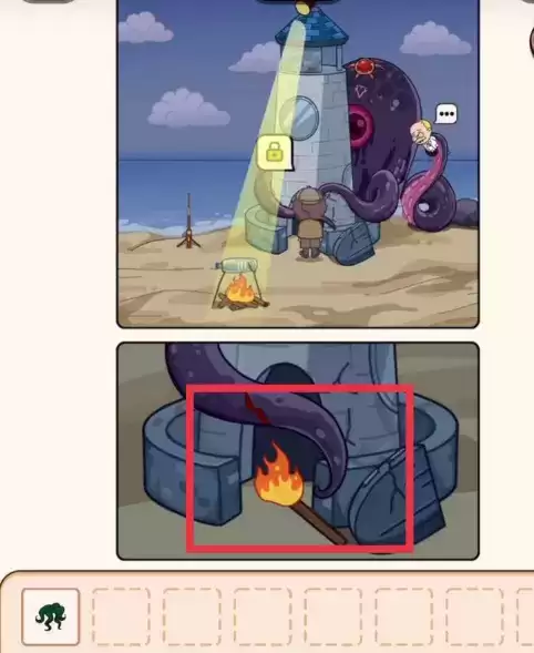 3.将火把放在灯塔门前的触须上,触须便会移开。