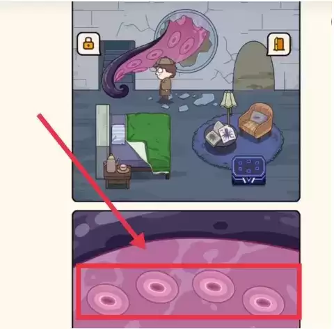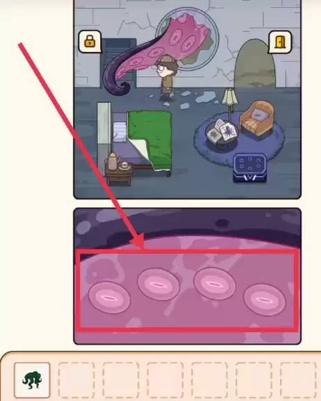 4.进入灯塔后,可以看见窗户处有一个触手,要然后触手上的吸盘全部张开。