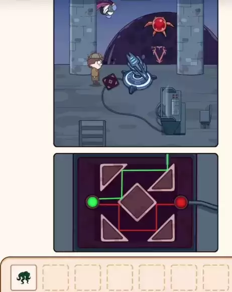 案件大师第50-55节攻略,拿走老师的眼镜,走到右侧门处点亮所有按钮(从左至右:三排1,一排2,二排1,三排2,二排2,一排1),得到骨头和汽油。出门把骨头给小狗,等它挖好坑过去拿