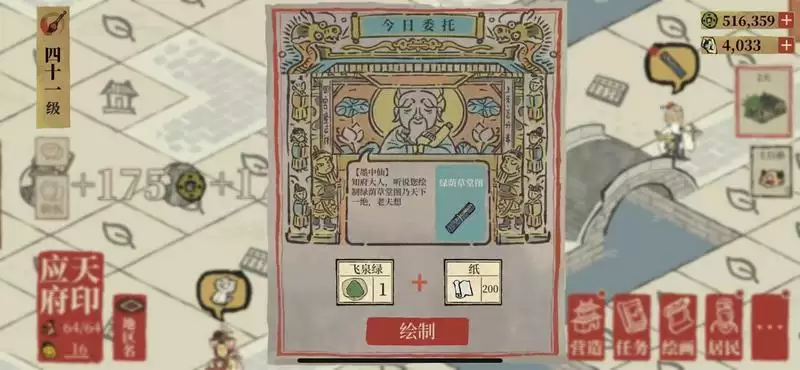 答:找到墨中仙,交付材料绘制,第三次获取绿荫草堂图