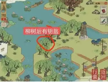 钥匙二,将下图这个柳树砍掉才可以获取钥匙