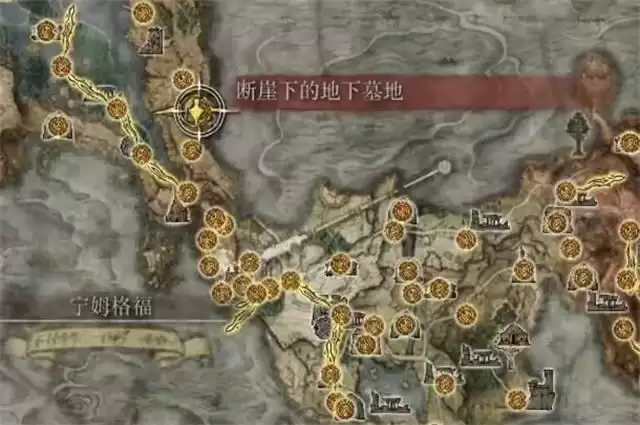 1、武器的位置在断崖下的地下墓地深处。