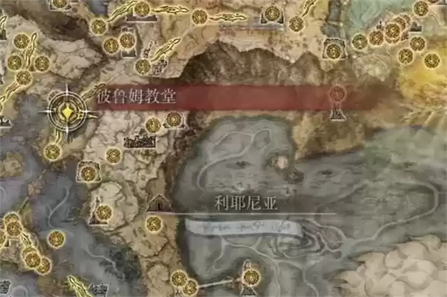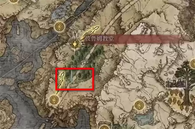1、传送到【彼鲁姆教堂】以后,往西南方向前进,来到下图的位置