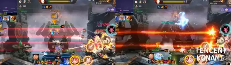 BOSS会随机瞬移到某个固定位置,随后向两侧张开触手,并出现预警,几秒过后触手横向发出两行激光攻击。随后BOSS会再度瞬移到一个位置释放一次该技能。升级过后BOSS的激光会变为从中间向上下两个方向扫射激光,瞬移攻击的次数也会增加。