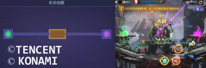BOSS在转阶段期间不再离开战场休息,而是直接在场景内开启无敌护盾,同时在场地两侧会打开传送门。护盾和传送门均有绿、紫两种颜色。